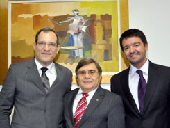 O Presidente da Seccional, Saul Quadros, recebeu, no dia 14 de maio, na sede da OAB-BA, o Superintendente Regional da Polícia Federal na Bahia, César Augusto Toselli, e o Diretor Regional Executivo do órgão, Daniel Veras. Da visita, resultou a promessa da Superintendência da PF de cessão de espaço no órgão para que a Ordem pudesse instalar a Sala.